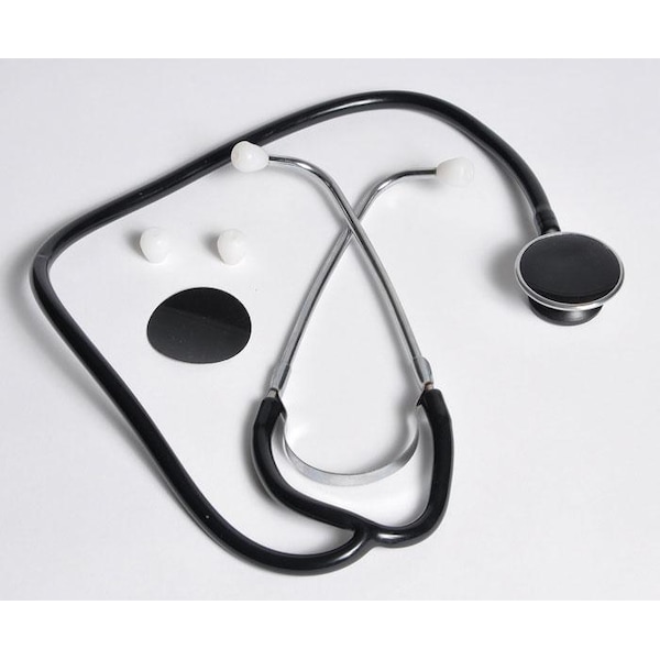 This Bowles-style stethoscope features a chestpiece composed of a 3.8cm flat disc diaphragm in a shallow metal bell cup. Chrome-plated binaurals are adjustable, and tubing is made of PVC. Ear tubes include plastic ear tips for comfort. Supplied with a spare diaphragm and extra set of ear tips.