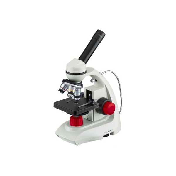 This is a portable, monocular compound microscope. Along with the led transmitted lighting, we include a free gooseneck led lamp which mounts behind the nospiece for reflected lighting. The microscope has five magnification levels 40x, 100x, 250x, 400x & 1000x when used with both sets of eyepieces. This microscope is suitable for both home use and field use as it can be used with batteries in addition to the ac power. This microscope is a great choice for kids who want to explore the microscopic world around them. features: a great affordable compound microscope dual led illumination. 45 degree inclined ocular tubes for comfort. stage includes clips for holding your slide in place coaxial coarse and fine focus adjustments for optimal focusing clarity and ease abbe condenser with disc diaphragm provides even illumination and control glass optical elements crystal clear sharp images high quality student microscope. perfect for up to high school students. five levels of magnification: 40x, 100x, 250x, 400x & 1000x battery power and ac power full optical glass elements excellent five 5 year factory warranty lowest price for the same guaranteed or the difference back!! satisfaction guaranteed or your money back!! specifications: nosepiece: triple. head: 45 degree inclined monocular. wide-field eyepiece: wf10x and 25x. achromatic objectives: 4x, 10x, 40x stage dimensions: 3-9/16in x 3-9/16in90mm x 90mm. condenser: na=0.65 with disc diaphragm. illumination: transmitted led and reflected led. power supply: 5.5v ac adapter or 3 aa batteries. packing list: three achromatic din objectives 4x, 10x, 40x single led gooseneck attachment top light two widefield eyepieces, wf10x and 25x power adapter three aa batteries shipping weight: 5 lbs