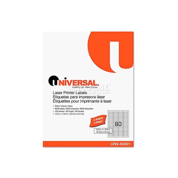 Universal® Laser Printer Permanent Labels, 1/2 x 1-3/4, White, 8000 Labels (Discontinued)