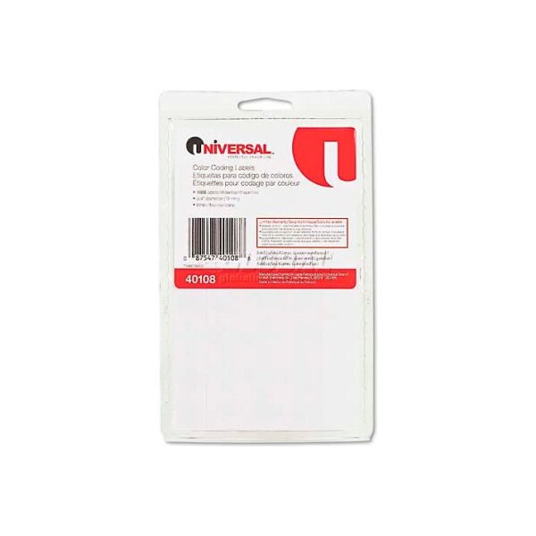Universal permanent self-adhesive color-coding labels, 3/4in dia, white, 1008/pack sticks to most surfaces and stays firmly in place. Label size - text: 3/4" dia.; label color(s): white. larger quantity quotes available. Please call 1-888-978-7759. this product arrives to most customers in 2-3 business days.