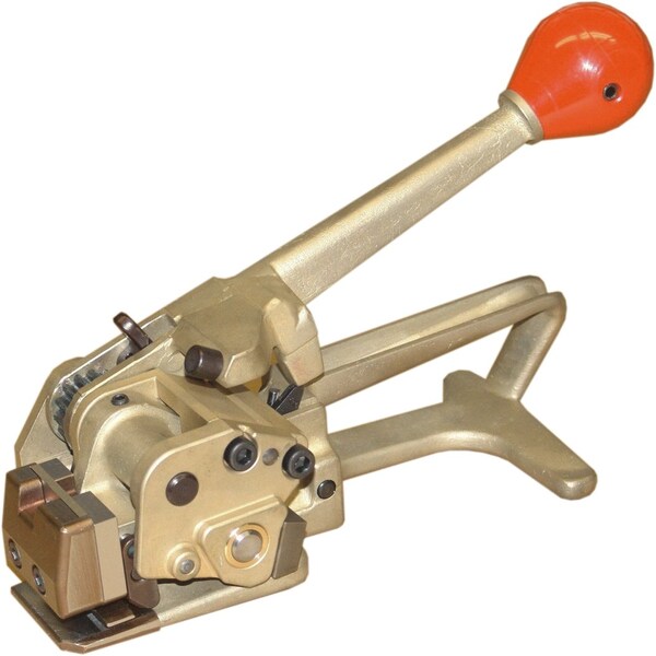 Manual tensioner with a serrated feedwheel surface, allowing for easy gripping onto plastic strap surfaces. With unlimited take-up capacity, it allows for easy tensioning of any load rather than dealing with a windlass system like other hand tools. Inclueds a cutting mechanism, removed the need for a separate tool for cutting away excess strapping. Tool Weight - 7lbs (3.2kg) Strap Width - 5/8" (16mm) Strap Thickness - 0.030" - 0.044" (1.76 - 1.11mm) Strap Types - PET
