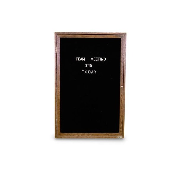 36"x36" 1-Door Enclosed Letterboard, White Vinyl/Walnut