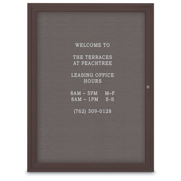 60"x36" 2-Door Enclosed Outdoor Letterboard, Grey Felt/Bronze