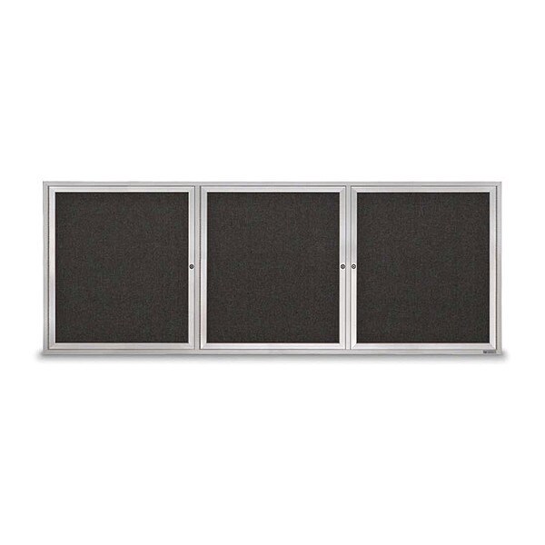 Corkboard, Fabric, 3 Door, Satin/Blk, 96x36"