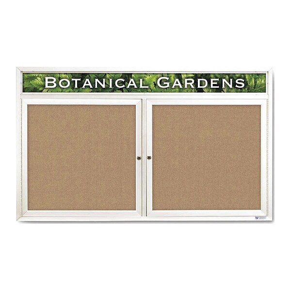 Corkboard,Header,Fabric,Wht/Buff,2 Door,60x36 In.