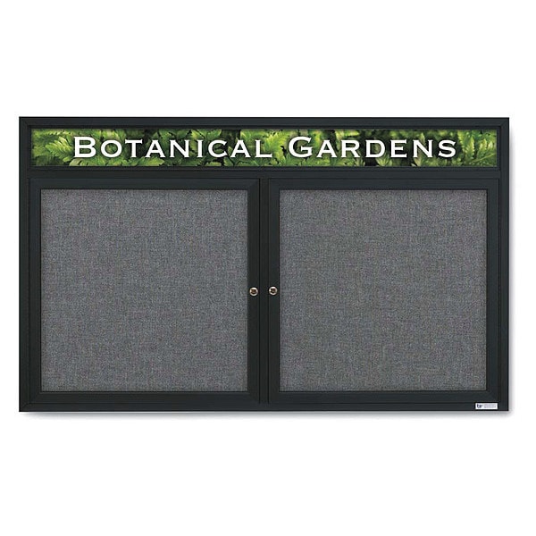 Corkboard,Header,Fabric,Blk/Gry,2 Door,60x36 In.