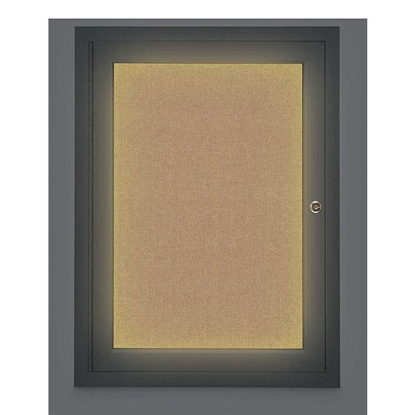 Corkboard,Lighted,Fabric,Blk/Buff,1 Door,18x24 In.