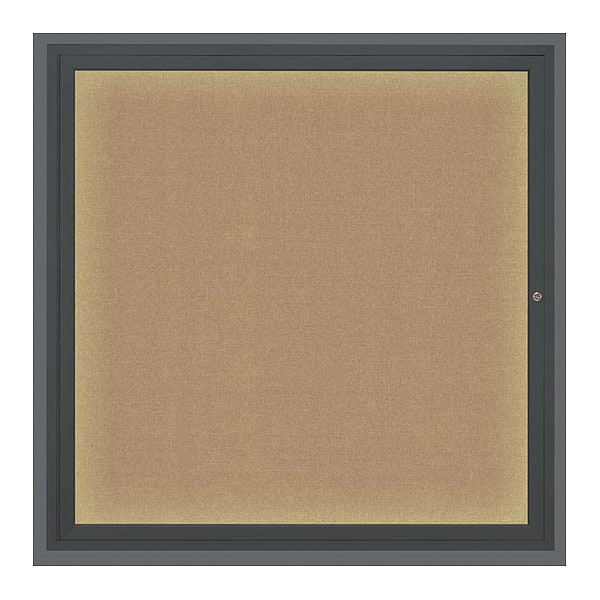 Corkboard,Lighted,Fabric,Blk/Buff,1 Door,48 x 48 In.