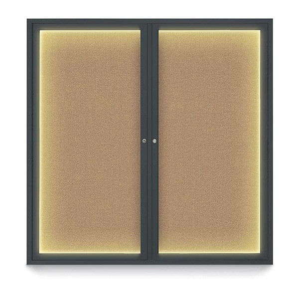 Corkboard,Lighted,Fabric,Blk/Buff,2 Door,48 x 48 In.