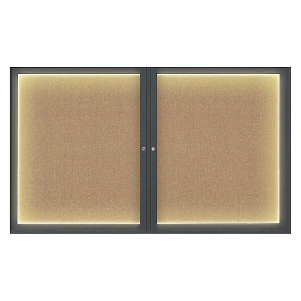 Corkboard,Lighted,Fabric,Blk/Buff,2 Door,60x36 In.