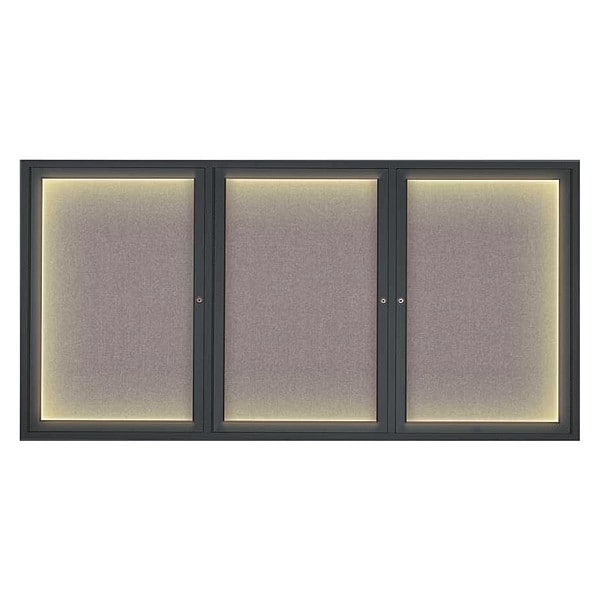 Corkboard,Lighted,Fabric,Blk/Surf,3 Door,72 x 36 In.