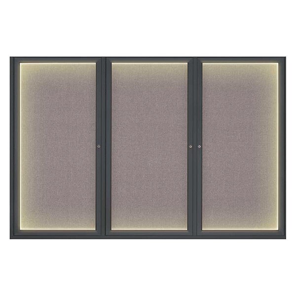 Corkboard,Lighted,Fabric,Blk/Surf,3 Door,72 x 48 In.