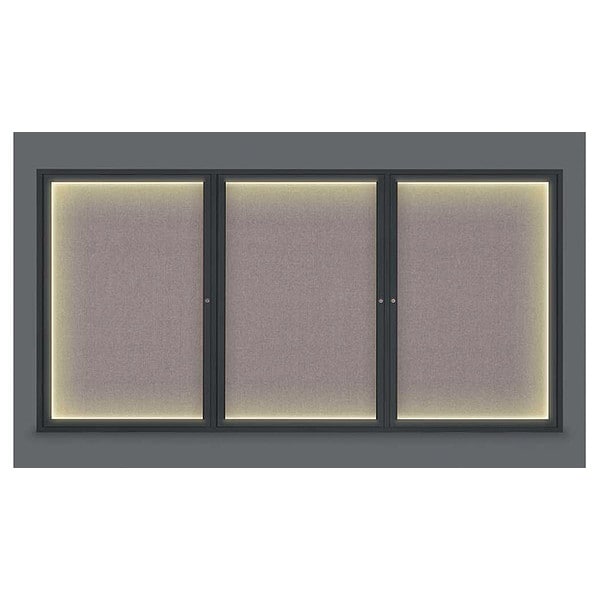 Corkboard,Lighted,Fabric,Blk/Surf,3 Door,96 x 48 In.