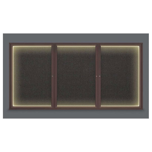 Corkboard,Lighted,Fabric,Brnz/Blk,3 Door,96 x 48 In.