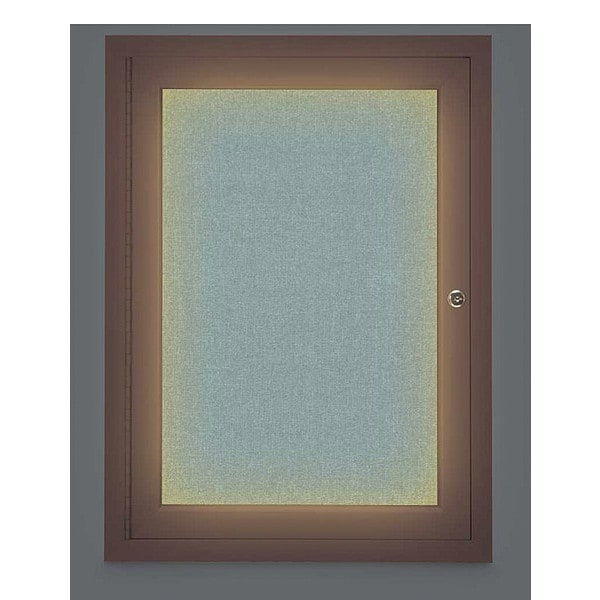 Corkboard,Lighted,Fabric,Brnz/Cld,1 Door,18x24 In.