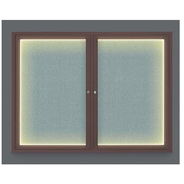 Corkboard,Lighted,Fabric,Brnz/Cld,2 Door,42 x 32 In.