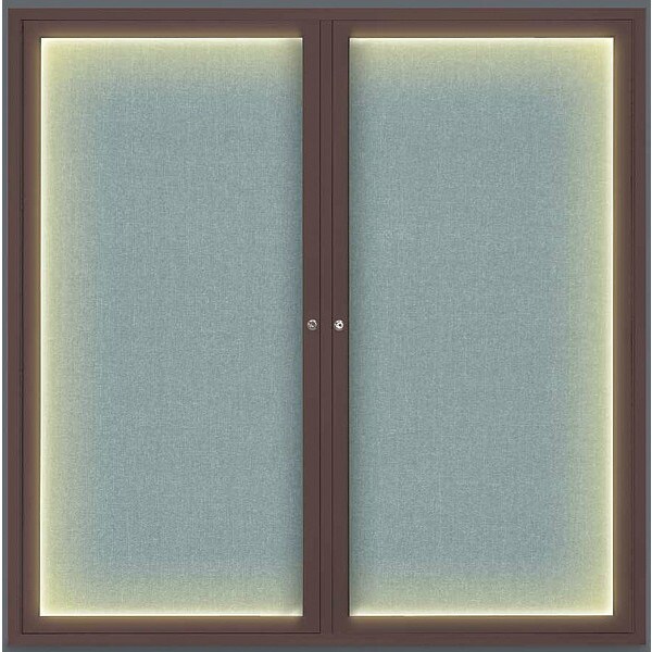 Corkboard,Lighted,Fabric,Brnz/Cld,2 Door,48 x 48 In.