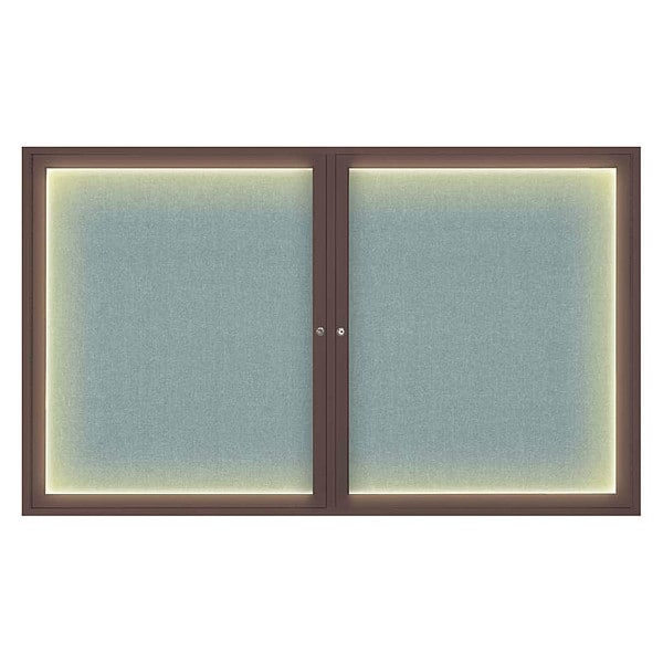 Corkboard,Lighted,Fabric,Brnz/Cld,2 Door,60x36 In.