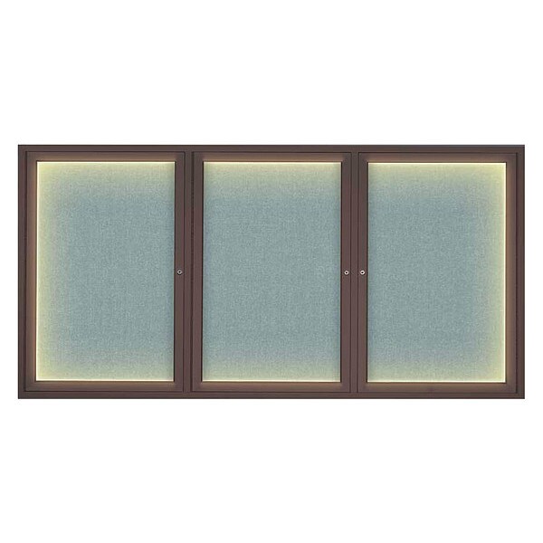 Corkboard,Lighted,Fabric,Brnz/Cld,3 Door,72 x 36 In.