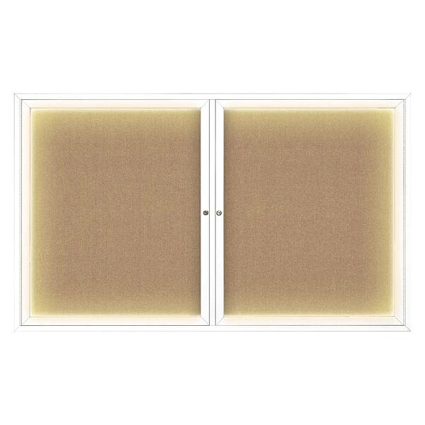 Corkboard,Lighted,Fabric,Wht/Buff,2 Door,60x36 In.