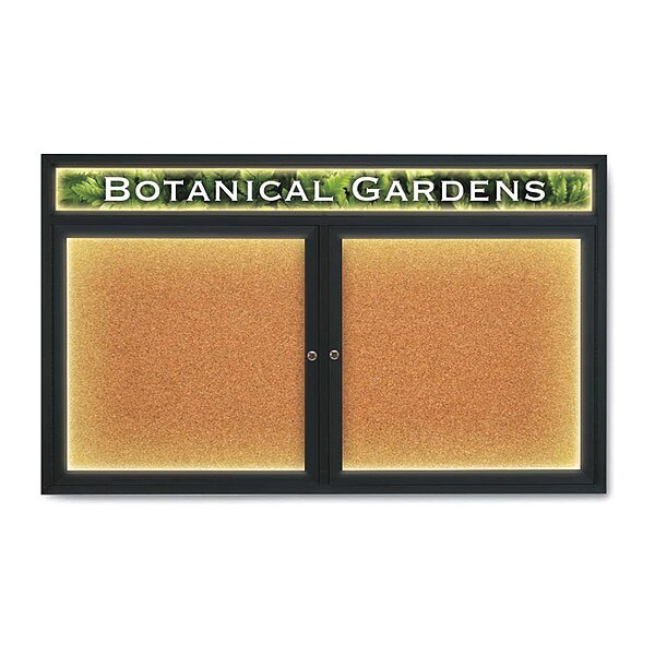 Corkboard,Lighted,Header,Blk,Cork,2 Door,60x36 In.