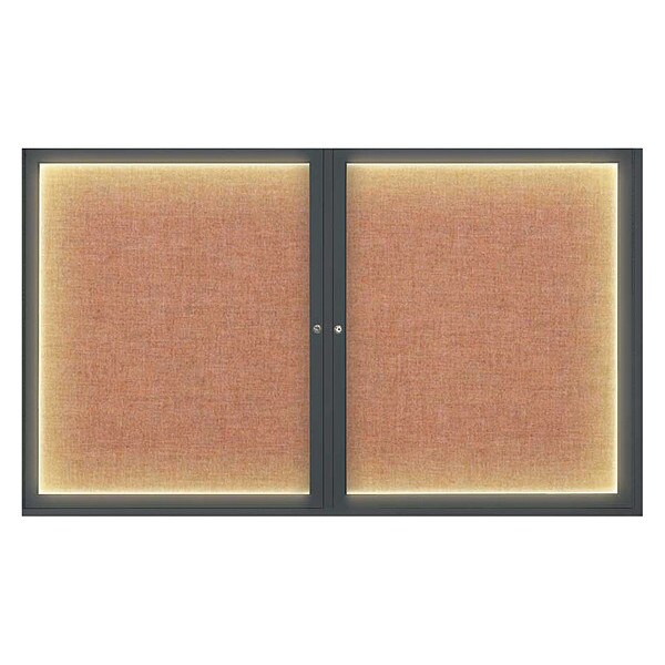 Corkboard,Lighted,Fabric,Blk/Cin,2 Door,60x36 In.