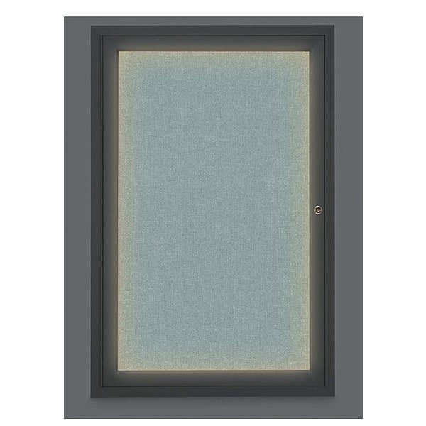 Corkboard,Lighted,Fabric,Blk/Cld,1 Door,24 x 36 In.