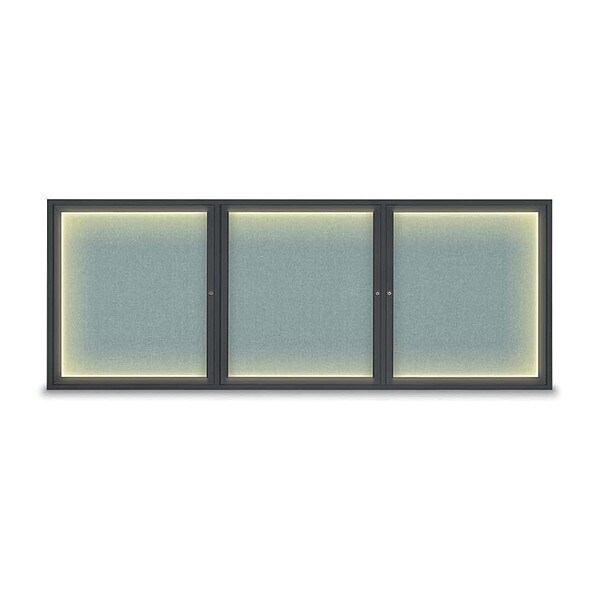 Corkboard,Lighted,Fabric,Blk/Cld,3 Door,96 x 36 In.