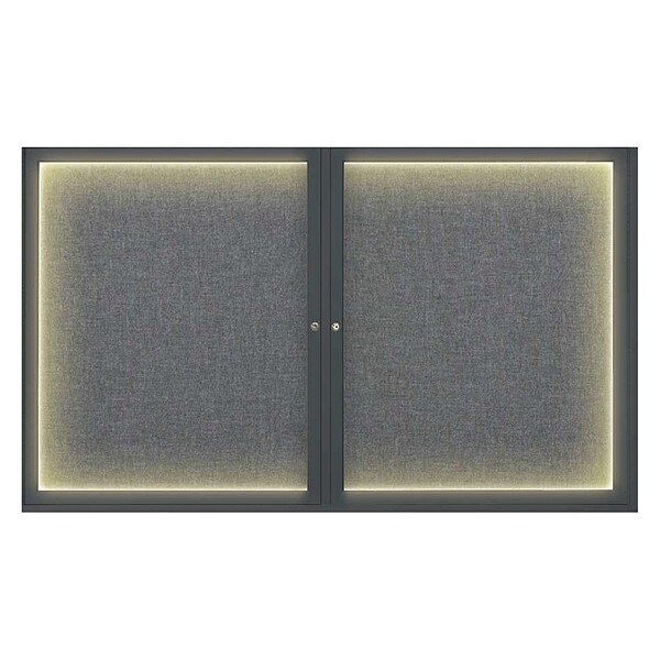 Corkboard,Lighted,Fabric,Blk/Gry,2 Door,60x36 In.