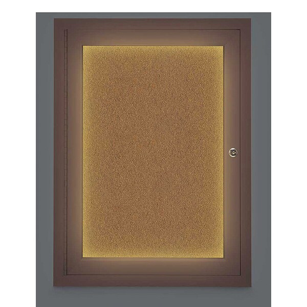 Corkboard,Lighted,Forbo,Brnze,1 Door,18x24 In.