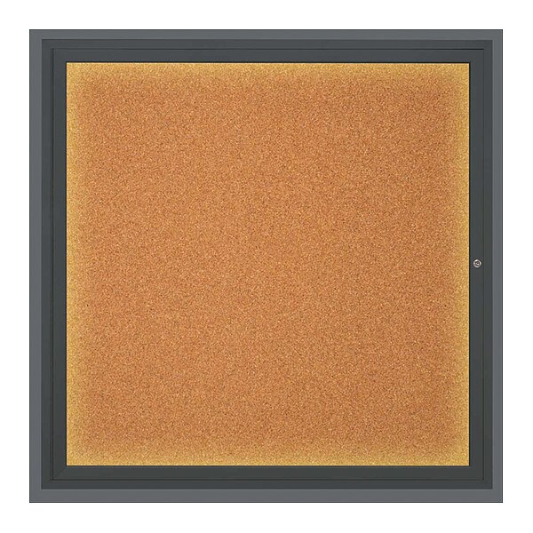 Corkboard,Lighted,Blk,Cork,1 Door,48 x 48 In.