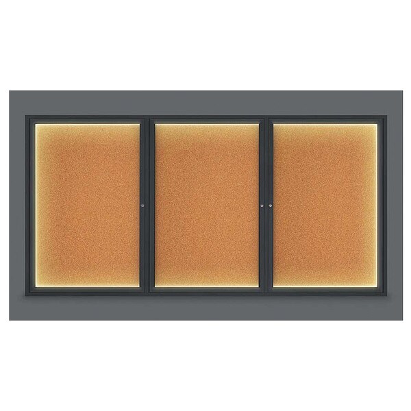 Corkboard,Lighted,Blk,Cork,3 Door,96 x 48 In.