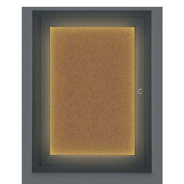 Corkboard,Lighted,Blk,Forbo,1 Door,18x24 In.