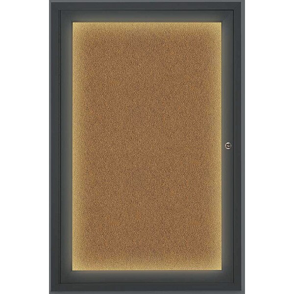 Corkboard,Lighted,Blk,Forbo,1 Door,24 x 36 In.