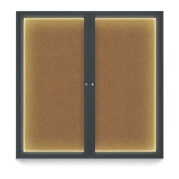 Corkboard,Lighted,Blk,Forbo,2 Door,48 x 48 In.