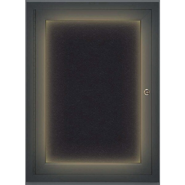 Corkboard,Lighted,Blk,Rubber,1 Door,18x24 In.