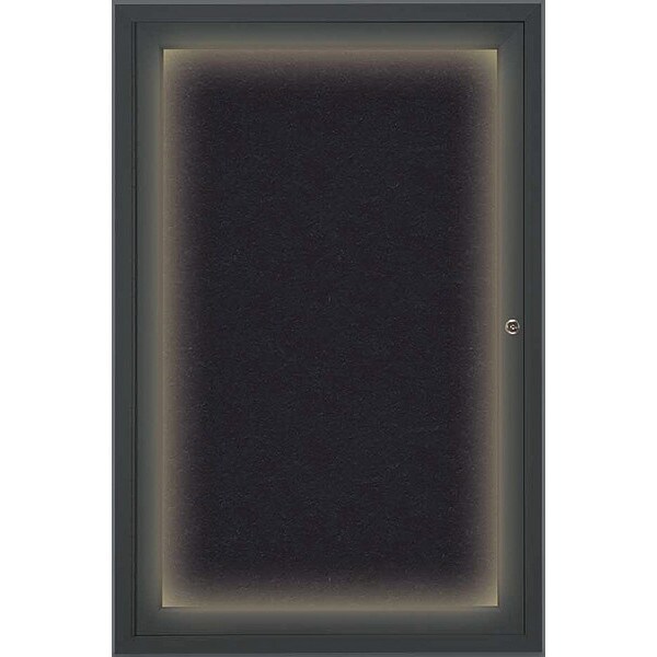 Corkboard,Lighted,Blk,Rubber,1 Door,24 x 36 In.