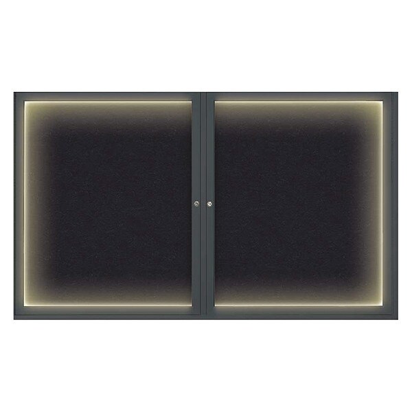 Corkboard,Lighted,Blk,Rubber,2 Door,60x36 In.