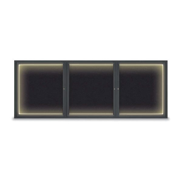 Corkboard,Lighted,Blk,Rubber,3 Door,96 x 36 In.
