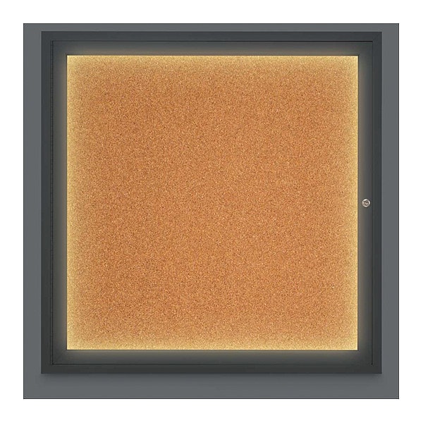 Corkboard,Lighted,Cork,1 Door,Blk,36 x 36 In.