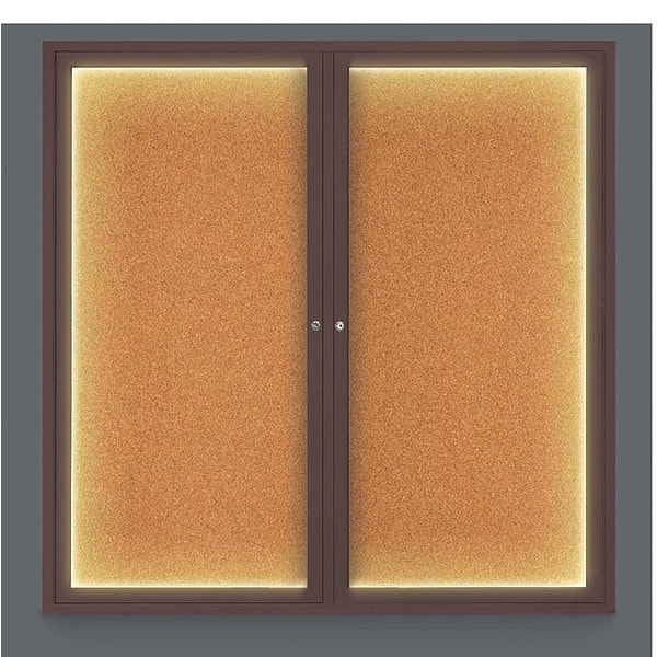 Corkboard,Lighted,Cork,2 Door,48 x 48 In.