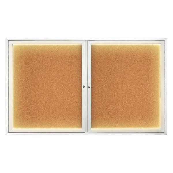 Corkboard,Lighted,Cork,2 Door,60x36 In.