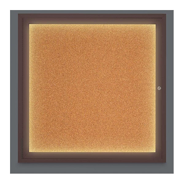 Corkboard,Lighted,Cork,Brnz,1 Door,36 x 36 In.