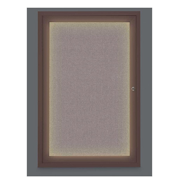 Corkboard,Lighted,Fabric,1 Door,Brnz,24 x 36 In.
