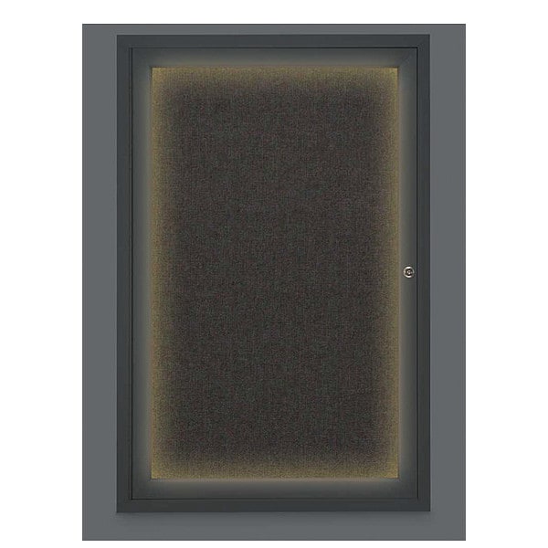 Corkboard, Lighted, Fbrc, Blk, 1 Door, 24x36"