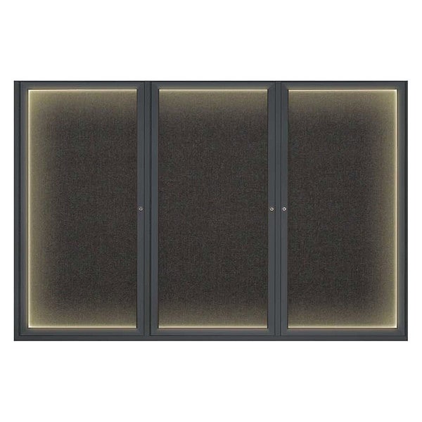 Corkboard,Lighted,Fabric,Blk,3 Door,72 x 48 In.
