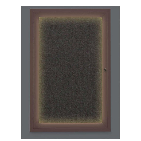 Corkboard,Lighted,Fabric,Brnz,1 Door,24 x 36 In.