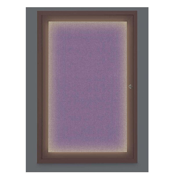 Corkboard,Lighted,Fabric,Brnze,1 Door,24 x 36 In.