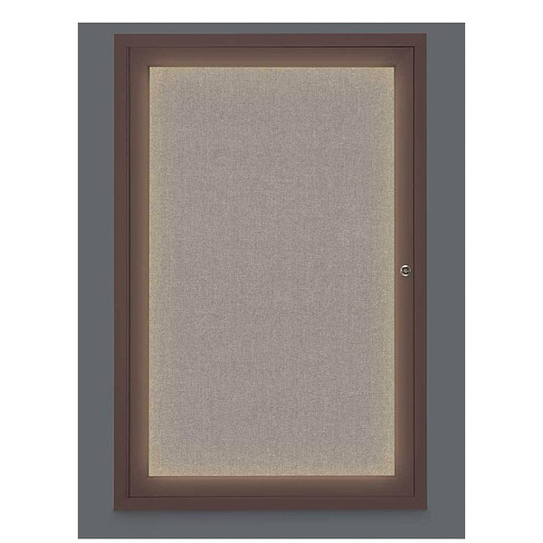 Corkboard,Lighted,Fabric,Bronz,1 Door,24 x 36 In.