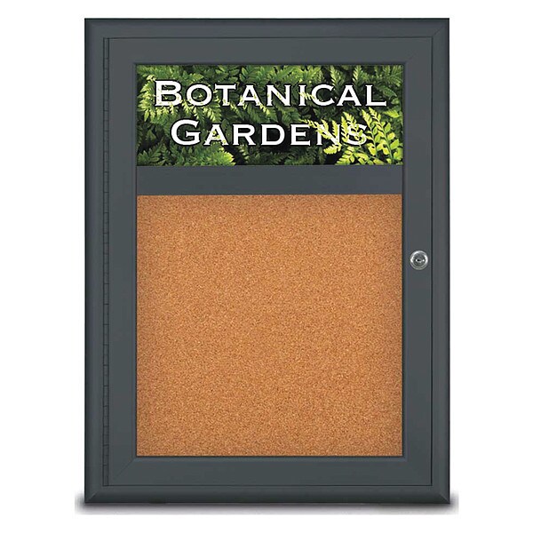 Corkboard, Single Door, Radius Frame, Header, 18x24", Black/Nat Tan Cork (Discontinued)